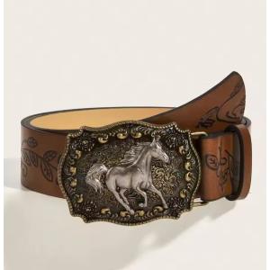 競馬ファン必見【馬バックル】開運 メンズ ベルト 高品質 天然皮革 レザー 幅3.8cm 干支 運気 勝負運