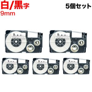 ネームランド テープ 9mm 互換 XR-9WE 白 ラベル 黒 文字 5個セット カシオ 用