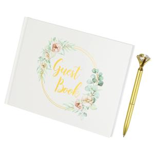 PATIKIL ゲストブック、ウェディングゲストサインブック、レセプション署名ブック、パーティーデコレーション用品、ダイヤモンドペン付き、誕生日ブ ラ