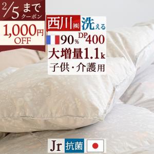 羽毛布団 ジュニア 西川 羽毛掛け布団 フランス産ホワイトダウン90% DP400 大増量1.1kg 西川掛カバー等特典付 洗える コインランドリー 介護用 日本製