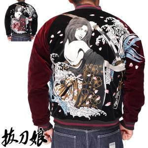 抜刀娘 バットウムスメ 絡繰魂 和柄 スカジャン メンズ 別珍 総刺繍 結愛 日本刀 234012 送料無料