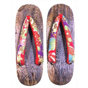 下駄 gt-1 菊・牡丹柄・赤地【訳有り】