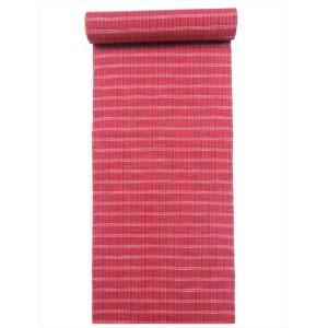綿紬 着物 反物 kr-85 赤地・格子柄【訳有り】