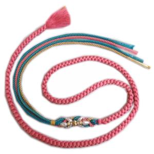 【訳有り 少難あり】 帯締め 帯〆 パールビーズ飾り付 正絹 ピンク 先割れ 3色使い 振袖 成人式 着物 帯じめ 振袖用