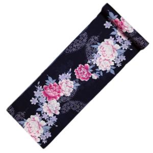 【訳有り 少難あり】 浴衣 ゆかた 反物 未仕立て 女性用 綿 濃紺地銀ラメ入り牡丹桔梗桜蝶 レディース 和柄 古典柄