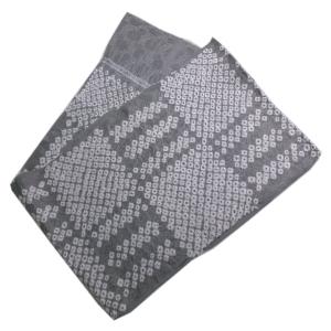 【訳有り 少難あり】 帯揚げ 帯上げ 絞り 正絹 グレー地 菊花地模様地 市松柄付 着物 訪問着 色無地 小紋 フォーマル カジュアル 帯あげ しぼり