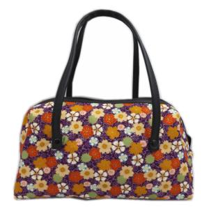 【訳有り 少難あり】 バッグ ミニボストン 和柄 紫色地桜梅撫子小菊 日本製 着物 卒業式 袴 はかま 女性用