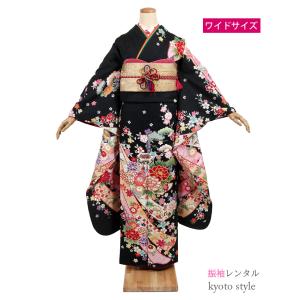 振袖 レンタル 成人式 大きいサイズ トールサイズ フルセット 結婚式 パーティー 振袖レンタル 黒 振り袖 着物レンタル ワイドサイズ rental 72114