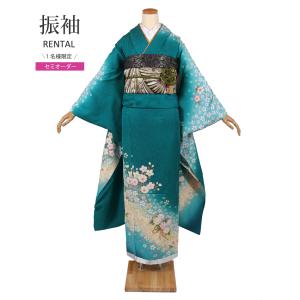 セミオーダー 振袖レンタル 成人式 フルセット 青緑 エメラルドグリーン 振袖 結婚式 結納 卒業式 振袖レンタル 二十歳 振り袖 シンプル 72275