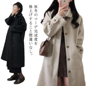 アウター 可愛い レディース 秋 ウール混 無地 ロングコート ジャケット 防寒 暖かい 冬 羽織 ロングコート ポケット付き ロング丈 コート ゆっ