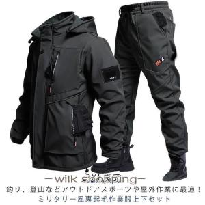 メンズ 作業服 裏起毛 防寒着 上下セット 厚手 裏ボア ジャケット ミリタリー マウンテンパーカー ジョガーパンツ セットアップ 防寒 軽量 撥水