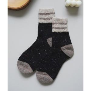 靴下 ストライプ テリー ウール混 あったか ソックス / カシミヤ混ソックス # レディース