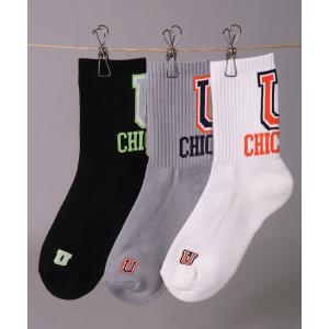 靴下 (LG)「UNIVERSAL OVERALL」「3足セット」カレッジ バック ロゴ クォーター ソックス レディース