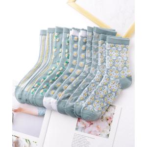 靴下 「10足セット」 立体 花柄 レリーフ クルー丈 ソックス レディース