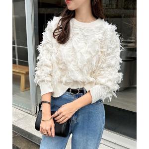 ニット セーター カットフリンジ長袖ニットトップス レディース