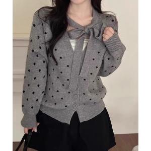 カーディガン 「秋冬新作」ミニドット柄V開きカーディガン レディース
