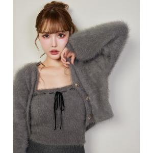 キャミソール 「セットで着れる」milkyフェザーニットビスチェ