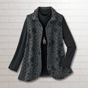 ベスト ジレ レディース おしゃれ 秋冬 ミセス シニア ファッション 40代 50代 60代 70代 80代 2枚襟ジャカードカットソーロングベスト
