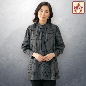 プルオーバー トップス レディース おしゃれ 秋冬 ミセス シニア ファッション 40代 50代 60代 70代 80代 エアロウォーム プリントロングプルオーバー