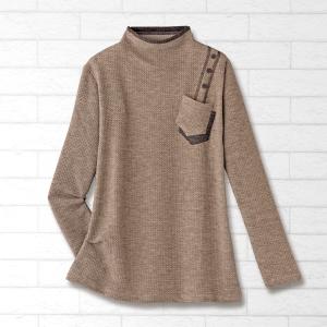 プルオーバー トップス レディース おしゃれ 秋冬 ミセス シニア ファッション 40代 50代 60代 70代 80代 ポケット配色杢調プルオーバー