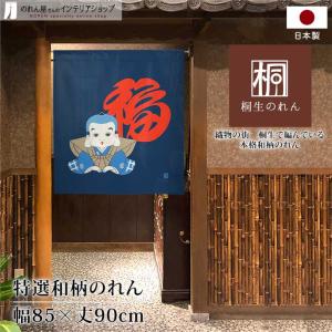 のれん ショート丈 和風 モダン 暖簾 特選和柄 85cm幅 90cm丈 間仕切りカーテン 福助人形 紺(受注生産 99799)