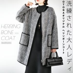 otonaオリジナル アウター コート レディース ブラック グレー 裏地付き きれいめ 上品 洗練された大人レディ ヘリンボーンコート OTONA 40代 50代 60代