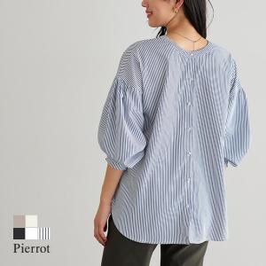 ブラウス レディース シャツ トップス 後ろボタン ぽわん袖 2way きれいめ MD