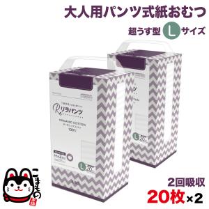 リラパンツ 大人用おむつ 薄型 紙オムツ 紙パンツ オーガニックコットン 2回吸収 Lサイズ 20枚入×2セット吸収量多い 介護 男性用 女性用 使い捨て 災害 40枚