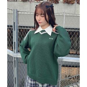 ニット セーター 刺繍入りゲームシャツニット/fint フィント レディース