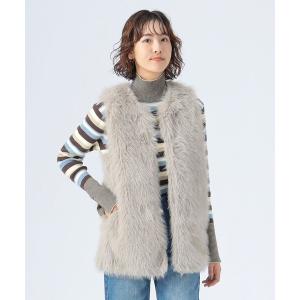 ベスト ジレ ノーカラー フェイクファー ベスト レディース