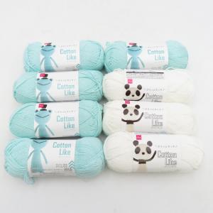 DAISO ダイソー 毛糸 Cotton Like コットンライク 8玉セット 1玉40g 約110m コットン アクリル 白×3玉 ミントグリーン×5玉 未使用品