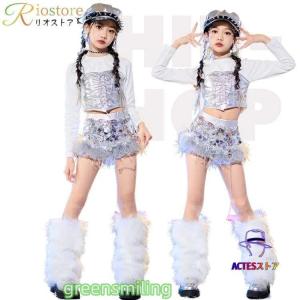 シルバー キッズダンス衣装 韓国スパンコール へそ出し キラキラ 派手 k-pop 銀色 ステージ衣装 jazz 練習着 演出服 応援団 セットアップ 女の子トップス 白 ヒ