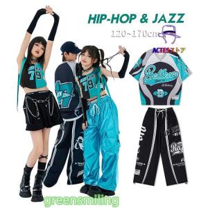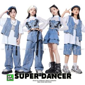 ヒップホップ ダンス衣装 ガールズ K-POP 韓国 キッズダンス衣装 セットアップ 派手 デニム トップス パンツ ダンスウェア 子供ダンス服