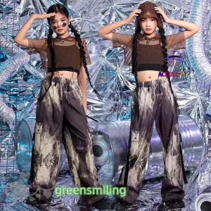 ダンス衣装 k-pop衣装 ヒップホップ インナー メッシュ 半袖トップス タイダイパンツへそ出し キッズ ガールズ セットアップ 派手 韓国 ステージ衣装 応援団