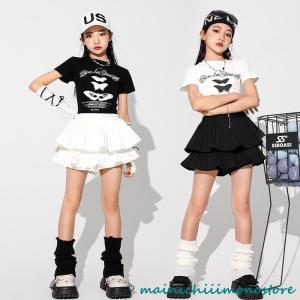 スカート キッズダンス衣装 K-POP 韓国 チアダンス ガールズ ヒップホップ ダンス衣装 キッズ 子供ダンス服 ダンスレッスン着 緑 ピンク 白 黒 4色