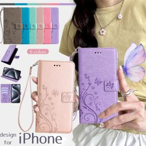 iPhone16 pro ケース 手帳型 蝶柄 型押し iPhone 15 ケース ストラップ 花柄 iPhone 13 ケース カードポケット iphone14 ケース おしゃれ 携帯ケース カード収納