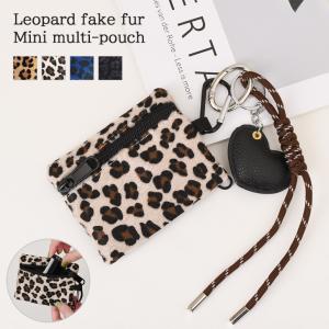 ポーチ 小物入れ レディース メンズ コインケース カード ミニ財布 小銭入れ レオパード カラビナ付き キーホルダー フラグメントケース