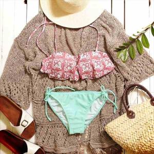 【SEA DRESS】エスニックタイル柄フレアバンドゥビキニ