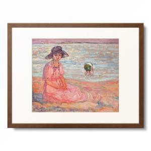 アンリ・ルバスク Henri Lebasque 「Woman in the Pink Dress by the Sea (Femme a la Robe Rose au bord de la Mer). Um 1920」