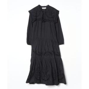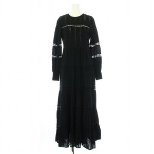 SEA NEWYORK PASCALE L/SLV DRESS ワンピース フレア ロング マキシ 長袖 レース コットン 2 M 黒 ブラック RS20-68