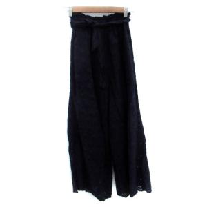 未使用品 シードレス SEA DRESS ワイドパンツ ストレート イージー アンクル丈 リボンベルト付き アイレットレース F 紺 ネイビー /HO24 レ