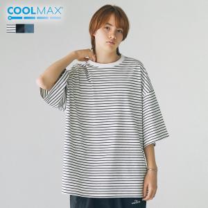 【メール便対応】 Tシャツ 半袖 カットソー トップス メンズ 夏 夏服 COOLMAX(R) クールマックス 吸水速乾 通気性 5分袖 無地 ブラック ボーダー ブルー