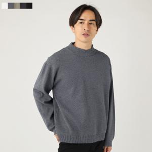 ニット セーター トップス メンズ 12ゲージ ウォッシャブル ハイネック モックネック 長袖
