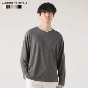 カットソー トップス メンズ フェイクレイヤード ジグザグ編み クルーネック 長袖 0702-41207