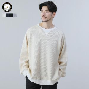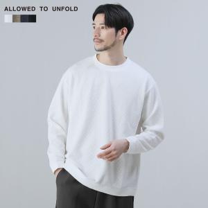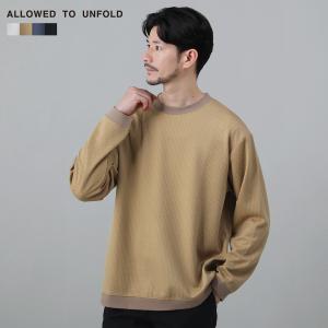 スウェット メンズ 春 長袖 ヘリンボーン クルーネック ジャガード 編み模様 ダブルフェイス デイリーユース カジュアル リブ 0702-51203 ALLOWED TO UNFOLD