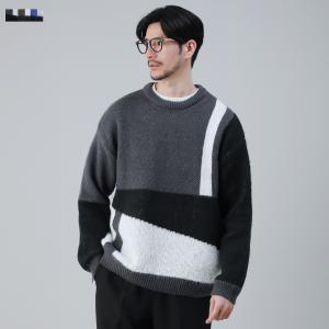 ニット メンズ 春物 冬 冬服 秋 秋服 パネル柄 切り替え 配色 ジャガード クルーネック 長袖 M L