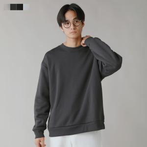 スウェット プルオーバー トレーナー メンズ 秋 冬 春 クルーネック 長袖 裏ボア ボア 暖かい 保温 軽量 ワイド 無地 グレージュ ブラック グレー 杢 M L LL