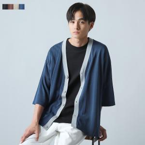 カーディガン トップス メンズ Vネック 半袖 5分袖 アクリル 透かし編み 通気性