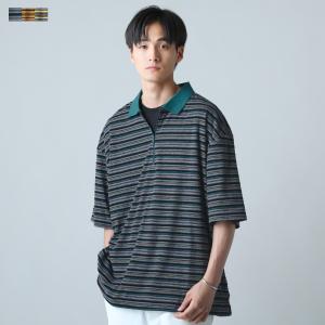ポロシャツ ハーフジップ メンズ 半袖 綿100 ボーダー カラフル 配色 開襟 綿 2way カジュアル ラフ M L