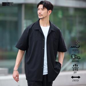 【セットアップ対応】 シャツ オープンカラーシャツ メンズ 春 夏 秋 半袖 5分袖 イージーケア 防しわ 軽量 伸縮性 通気性 速乾 薄手 ゆったり
